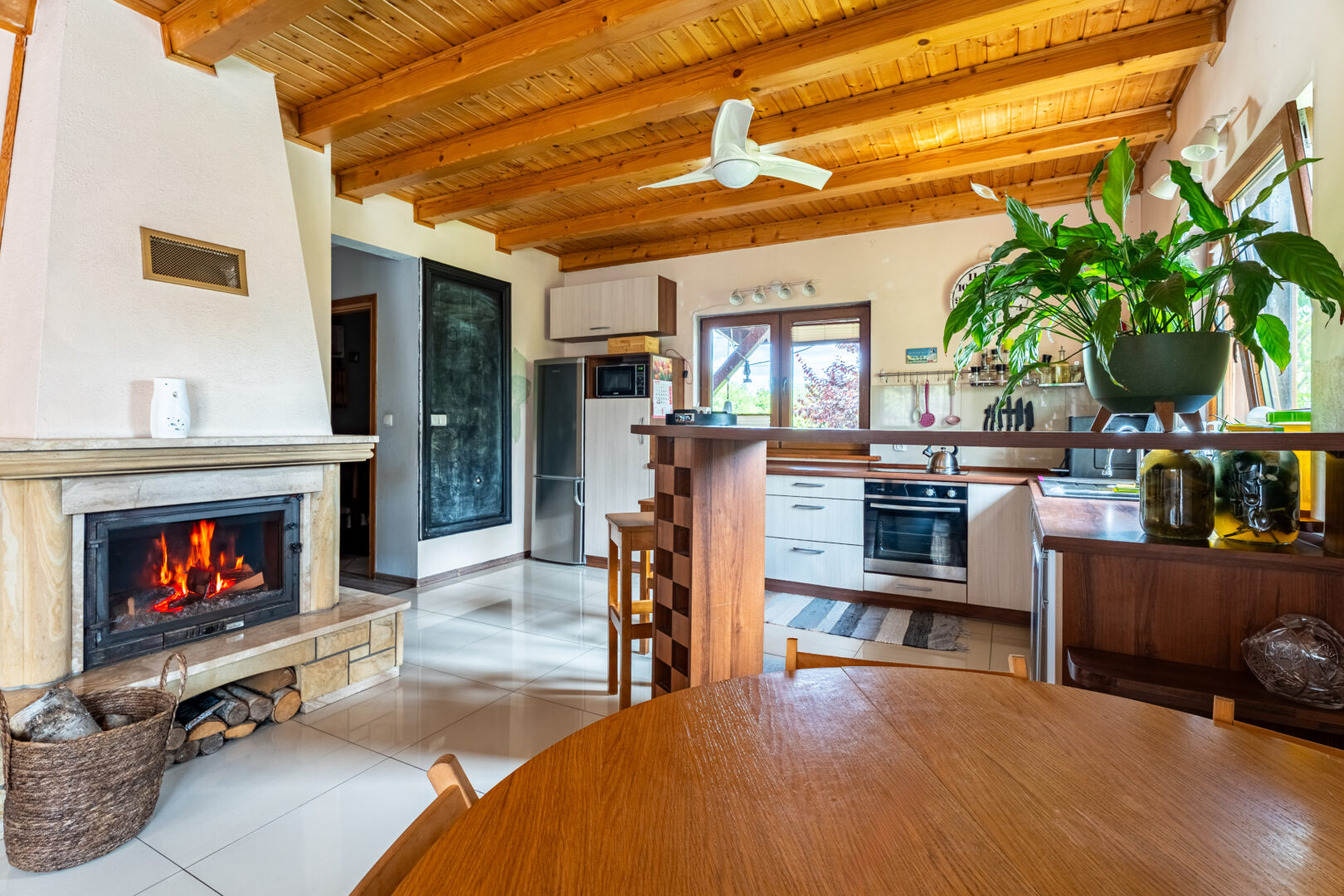 Kuchnia jest jasna, otwarta na salon, co sprzyja integracji rodziny podczas codziennego życia.