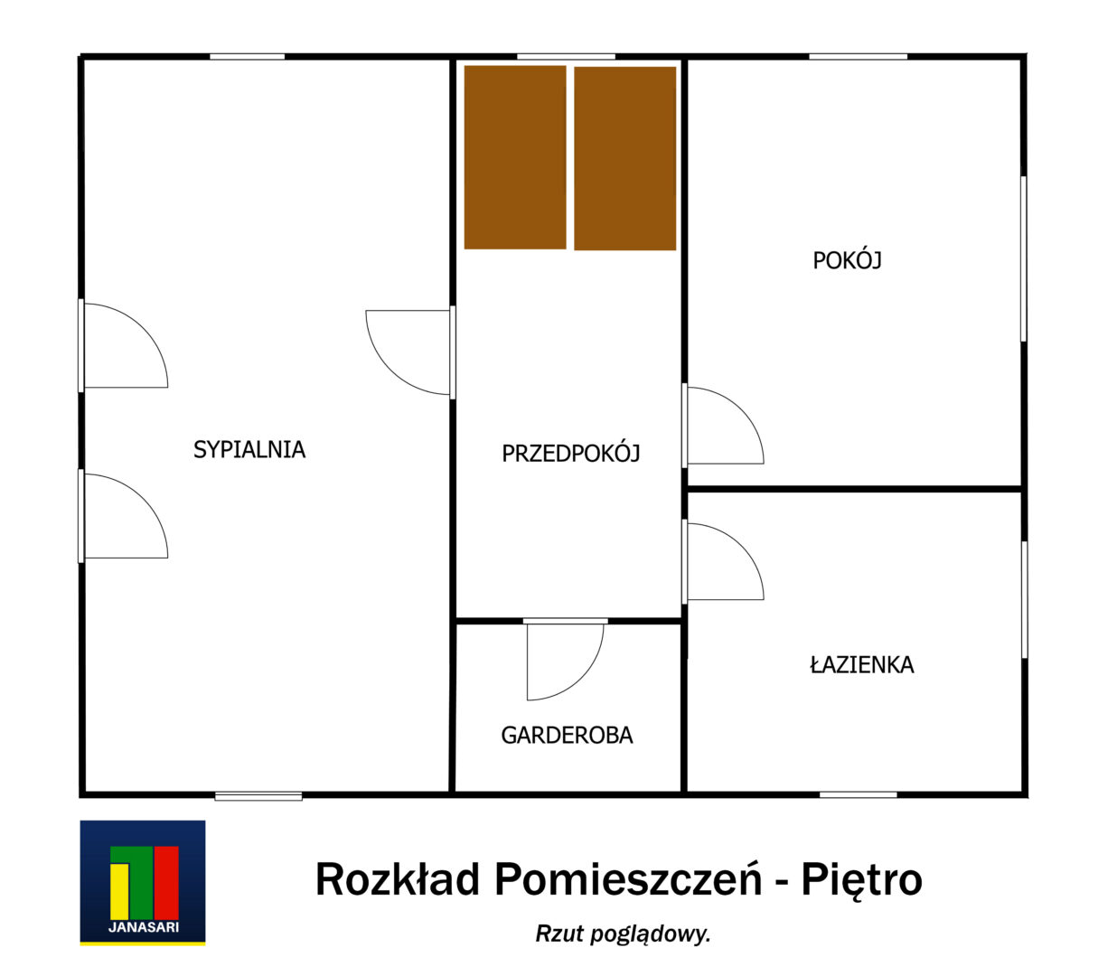 Piętro: duża sypialnia główna z balkonem (z opcją podziału), pokój, łazienka z wanną, garderoba, przedpokój.